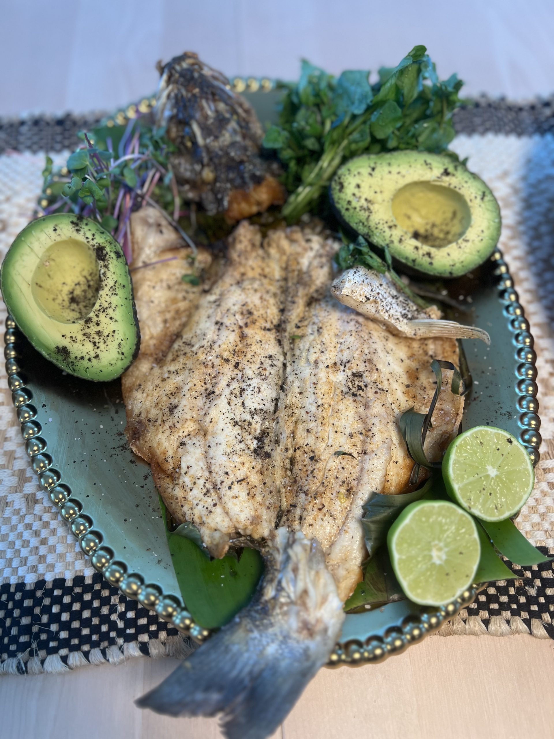 Seared Branzino Sea Bass with fresh avacados and lime to dress a perfectly seasoned filet.