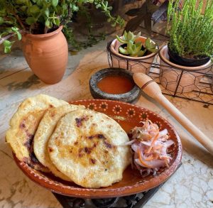 Pupusas stuffed with fillings such as beans & cheese, shredded pork, shrimp served with a side of curtido and home made salsa.